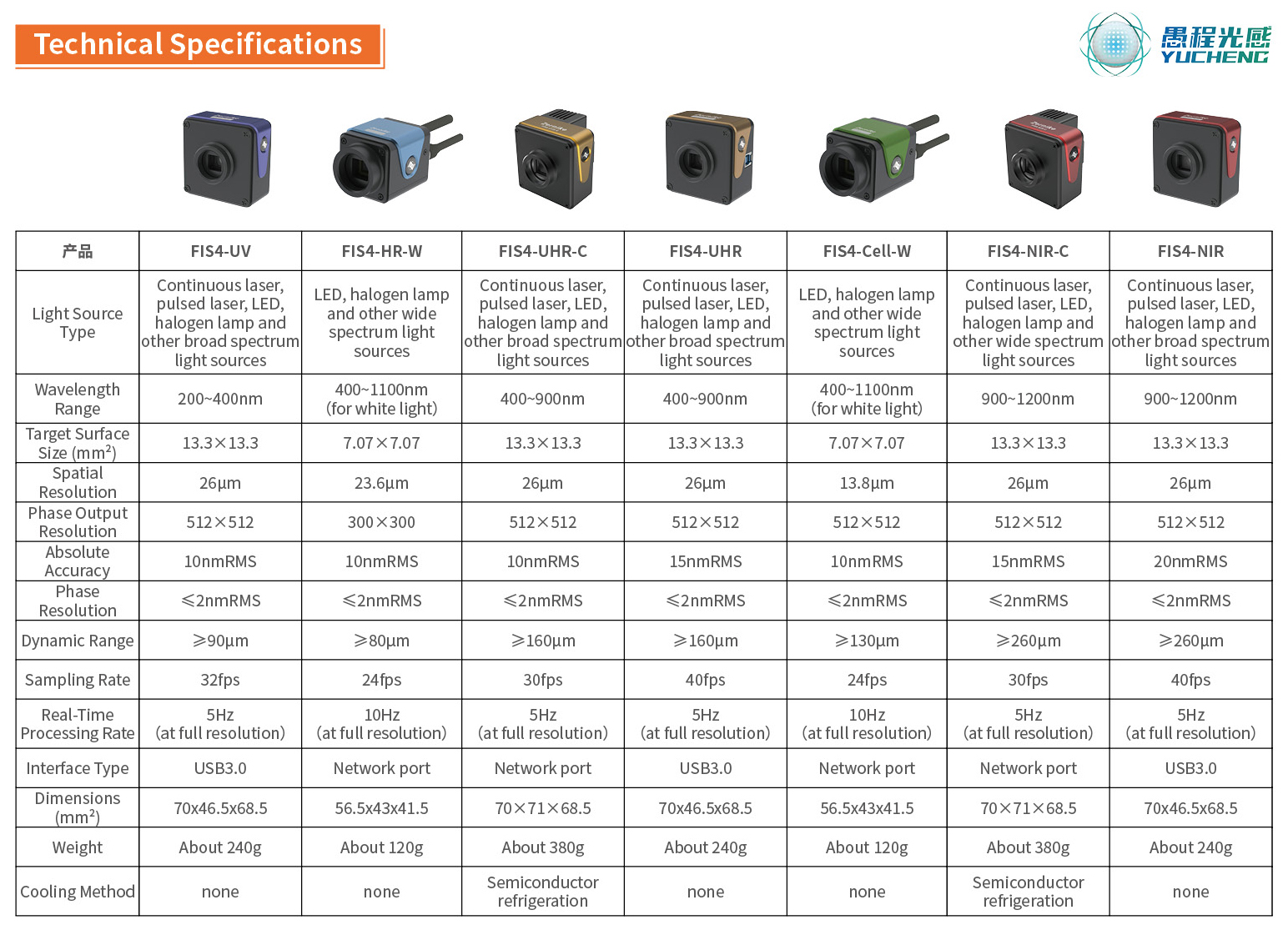 보지온fis4NIR 웨이브 프론트 센서 900-1200NM 매개 변수 (사양)