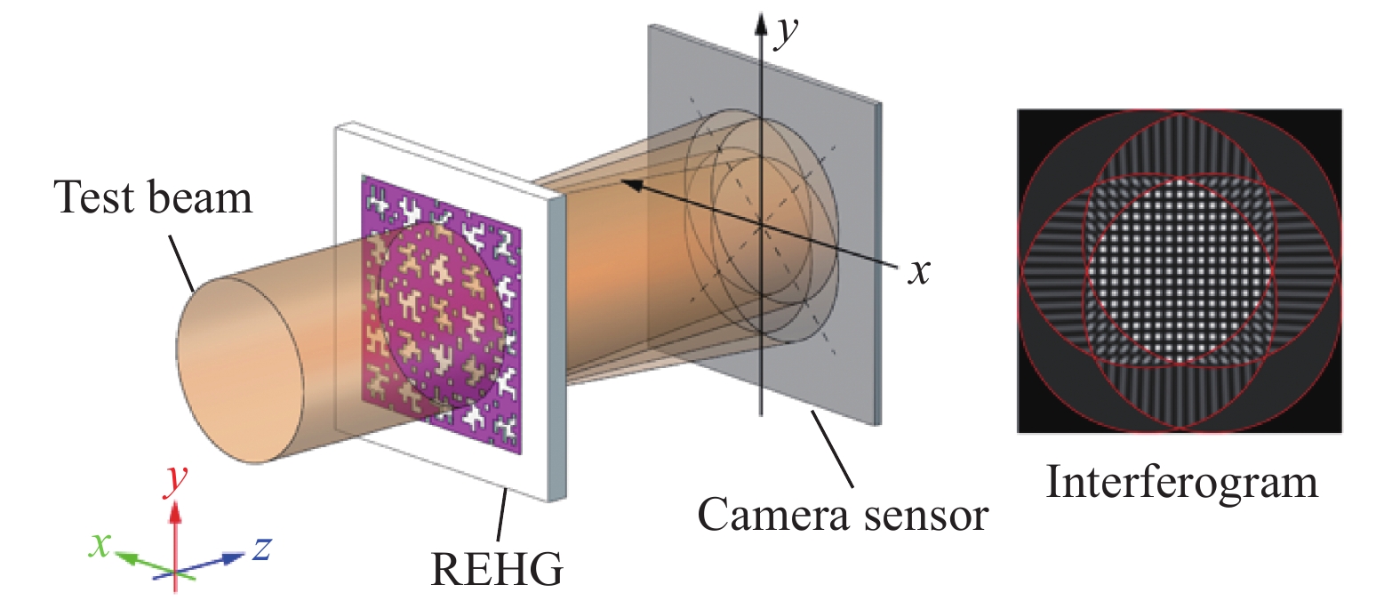 그림 1. 무작위로 코딩 된 하이브리드 격자 (REHG)를 사용한 4 파 측면 전단 간섭을 기반으로 한 상 이미징 원리